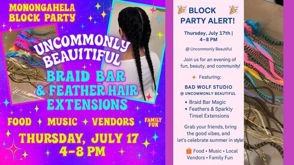 Get ready for the ultimate small-town summer celebration! Join us on Main Street in New Eagle & Monongahela for a fun-filled Summer Block Party the whole community will love. We are turning Main Street in to a lively festival with music, delicious food trucks, local vendors, games, and family-friendly entertainment! Local businesses will be offering extended or adjusted hours for 1 night only!